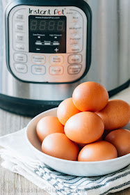 I got my first Instant Pot a few months ago.  I'm finally getting comfortable using it.  My daughter, Rachel, has had one for a couple of years and she has helped me figure out how to use it. She always cooks hardboiled eggs in hers.  I finally tried it myself, and she's right.  It's a great way to hard boil  eggs.